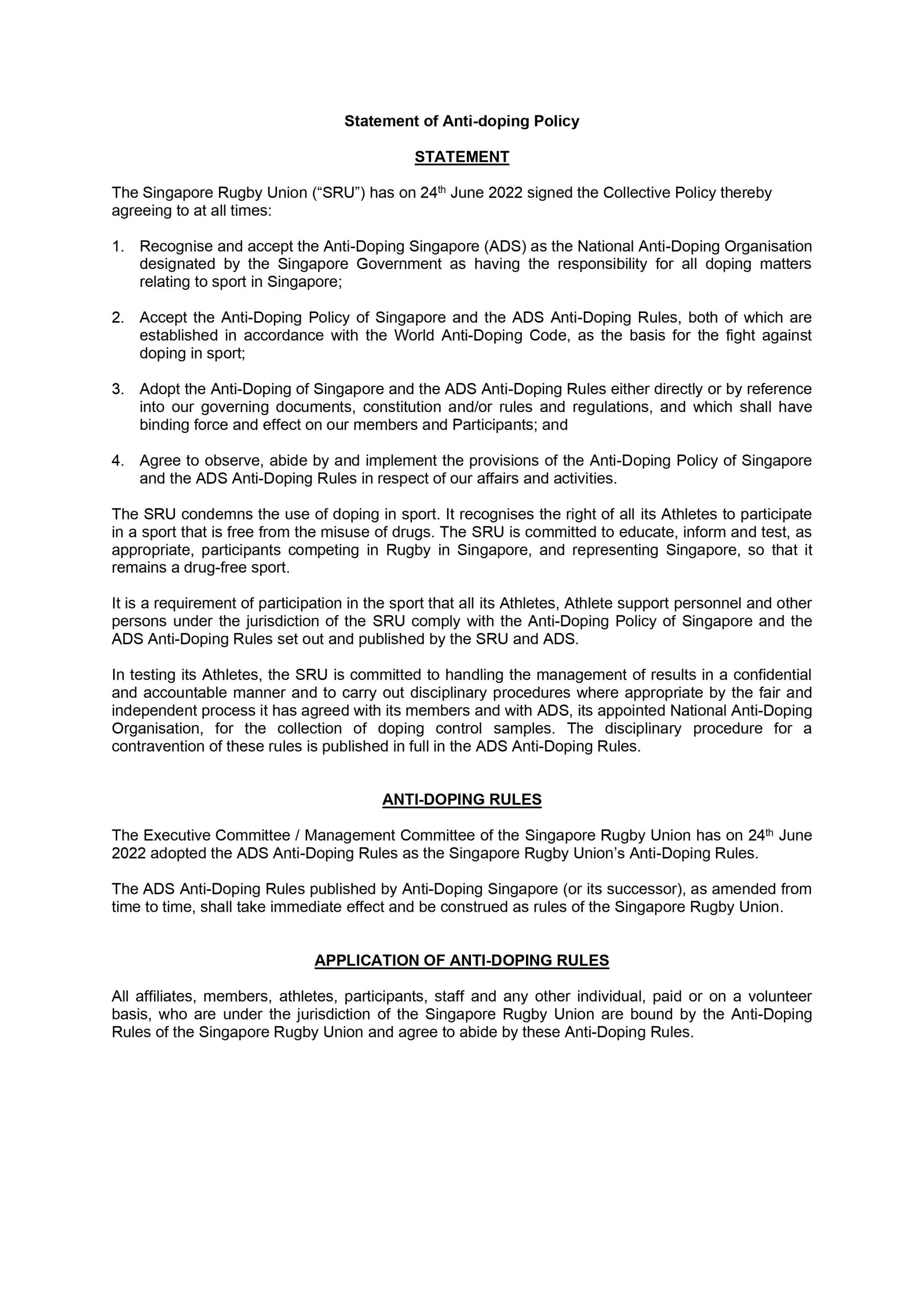 Statement of Anti-Doping Policy